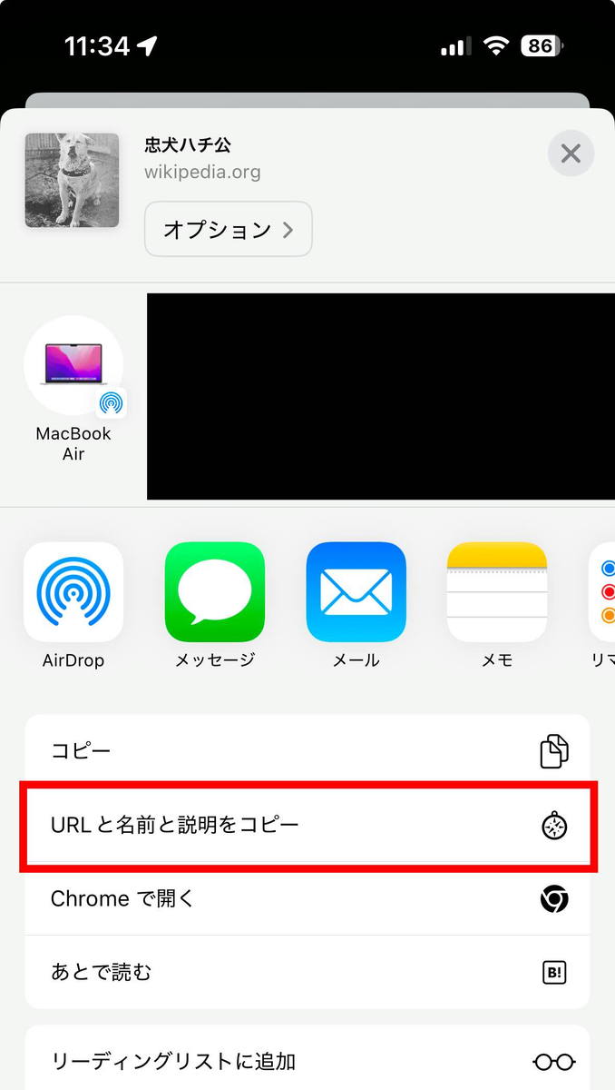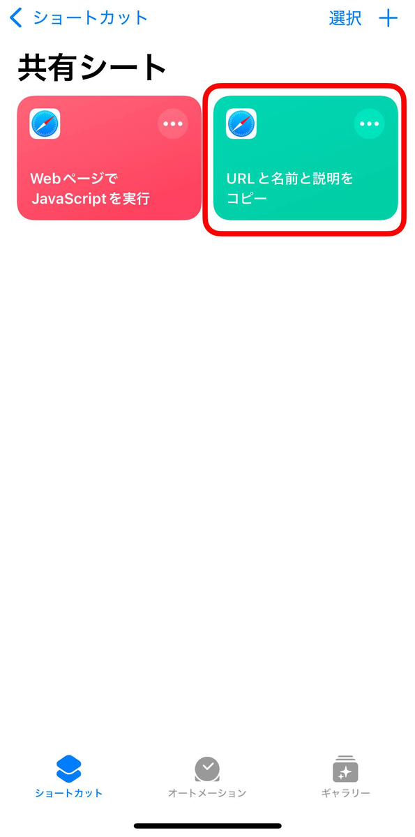 Title: URLと名前と説明をコピー URL: https://www.icloud.com/shortcuts/656293a2bdbf4028a9839851e11c7203
